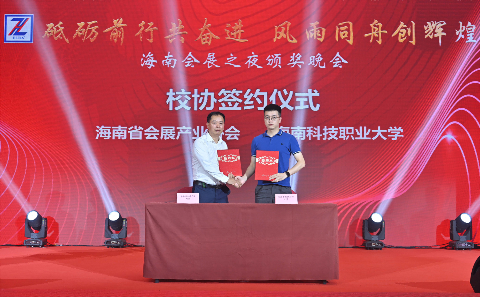 与海南省会展产业协会会长曹念东现场签署校协合作协议