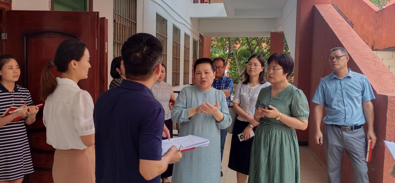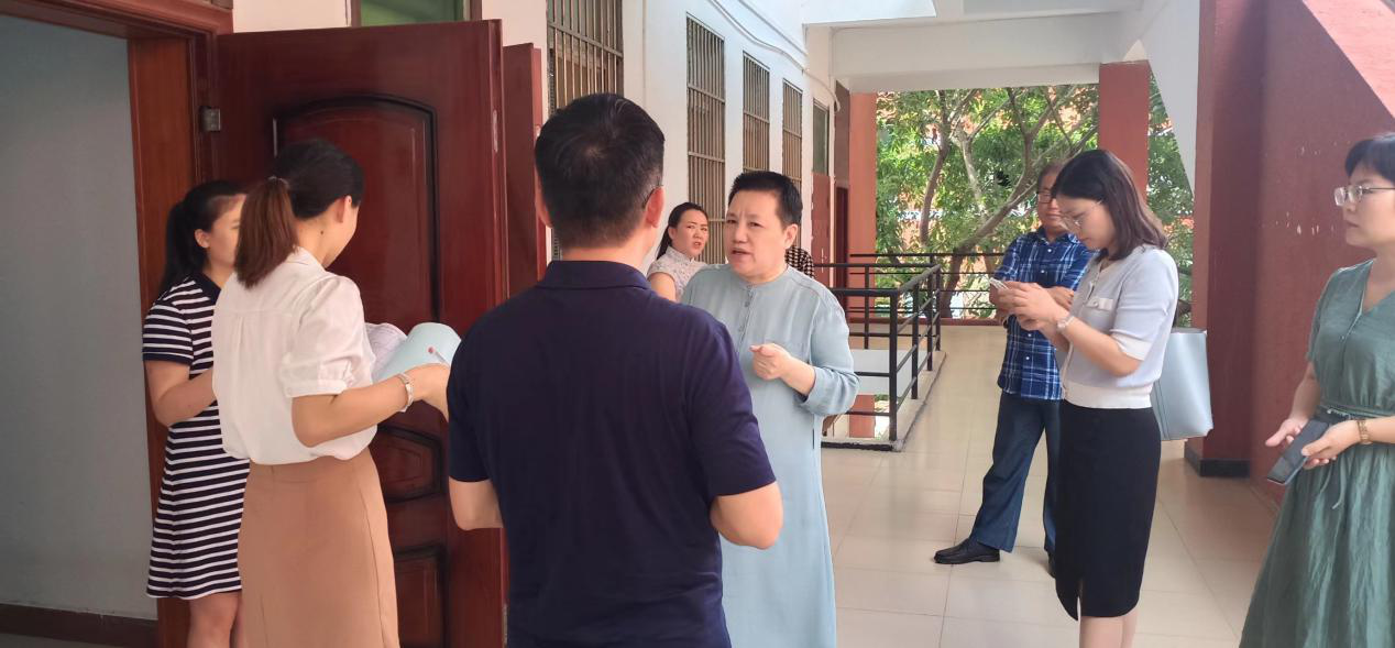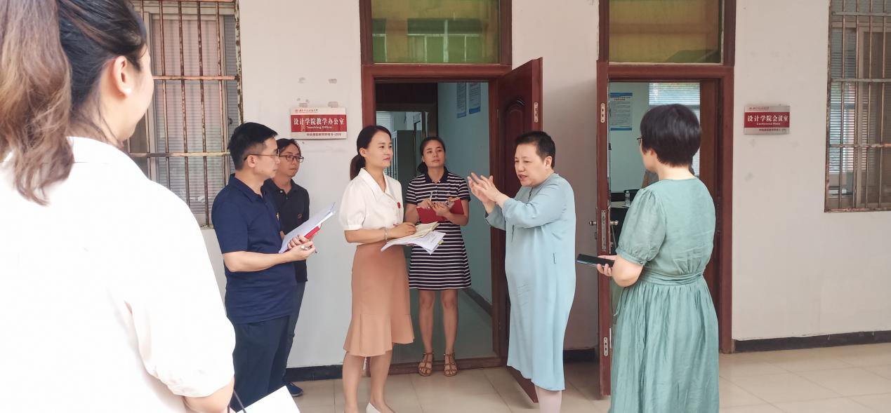 2023年7月4日下午,学校创校校长、法定代表人、理事长杨秀英教授莅临设计学院进行工作指导。张小莹、刘成有、刘家枢、杨静、潘灵5位副校长及资产处、教务处、人事处、评建办等相关部门负责人陪同参观。