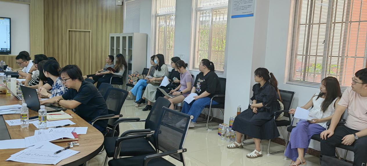 大会伊始,教学秘书尹乐乐针对近期教务处对2022--2023学年期末教学材料的初审进行了详细地总结汇报。