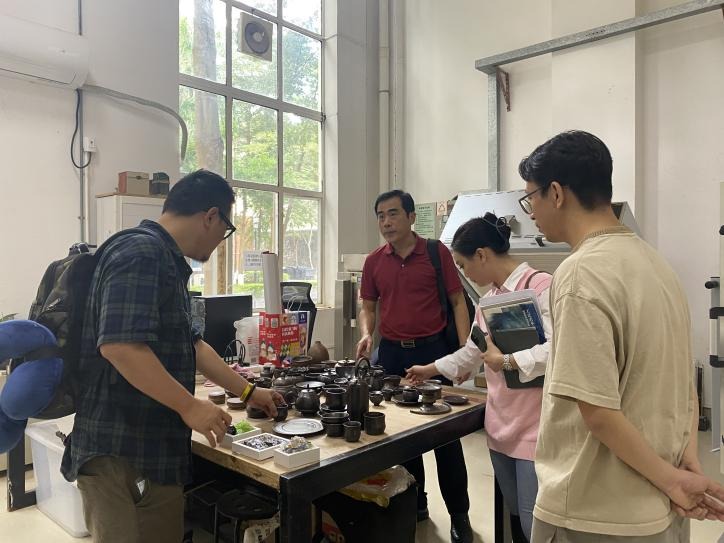 随后,华世佳书记一行参观了正在展出的设计教育成果及学院实训大楼,其中有珠宝设计实训室、陶艺实训室、工业设计产品实训室等实训室。通过实地参观,详细了解了深职院艺术设计学院在专业方面的教学设施与教学特色,对学院在艺术设计教育方面的成果作出了高度评价。同时学工副院长刘琴芝针对学生工作经验进行了深入交流。